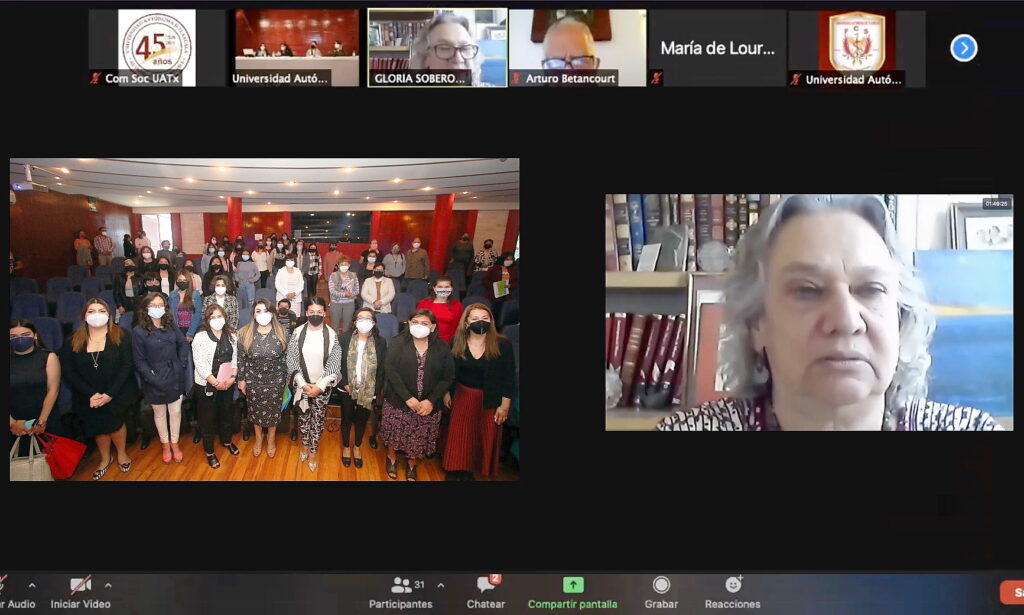 Esta actividad, contó con la participación de la Magistrada Mary Cruz Cortés Ornelas, Presidenta del Tribunal Superior de Justicia del Estado, de la Diputada Alejandra Ramírez Ortiz, Presidenta de la Comisión de Educación, Ciencia y Tecnología del Congreso local, la Dra. Gloria Soberón Chávez, del Instituto de Investigaciones Biomédicas de la UNAM, y la Dra. Margarita Martínez Gómez, Coordinadora del Centro Tlaxcala Biología de la Conducta (CTBC). En su exposición, la Magistrada Cortés Ornelas apuntó que, las mujeres juegan un papel importante para enfrentar el cambio climático, ya que es un grupo que ha aportado a este tema desde sus ámbitos, además de que están tomando experiencia y liderazgo en materia de medio ambiente, sin embargo, aún queda mucho por hacer para apoyar su papel en la toma de decisiones y garantizar un futuro mejor para todos. A su vez, la Diputada Ramírez Ortiz, subrayó que es de vital importancia crear conciencia sobre el cambio climático y la participación de las mujeres para construir una agenda que proteja al medio ambiente, que abata su deterioro y se diseñen leyes para que se asuma una responsabilidad civil, que permita avanzar en la justicia social, ya que, ahora, la prioridad es cuidar el medio ambiente. En tanto, la Dra. Soberón Chávez, planteó que, desde la competencia de cada mujer, se establezcan medidas que empoderen las consideraciones que generan aportes a las condiciones de ejercer un cambio, que permee todos para tener una actuación oportuna con base en la educación, en las políticas públicas y generar una facultad para cuidarnos con perspectiva de género. La Dra. Margarita Martínez Gómez indicó que, las mujeres a nivel mundial viven y asumen los efectos causados por el cambio climático, por ello, su inserción en esta tarea debe considerarse en el marco de los derechos humanos y, además, este tópico, desde la academia, debe conducir a propuestas y acciones para la construcción de una vida con menos violencia de género, dando prioridad al cuidado del medio ambiente con la participación generacional. En su oportunidad, la Dra. Elvia Ortiz, Coordinadora de la División de Ciencias Biológicas, mencionó que este evento reúne a mujeres que se han desarrollado en diferentes ámbitos laborales y que, ahora, con una gran perspectiva comparten su experiencia. Agregó que, el desarrollo sostenible ha sido una asignatura que se aborda en la UATx, por ello, se estableció que hablar del tema era necesario ya que, mujeres y niñas, son grupos que promueven medidas para solventar el cambio climático y sus efectos.