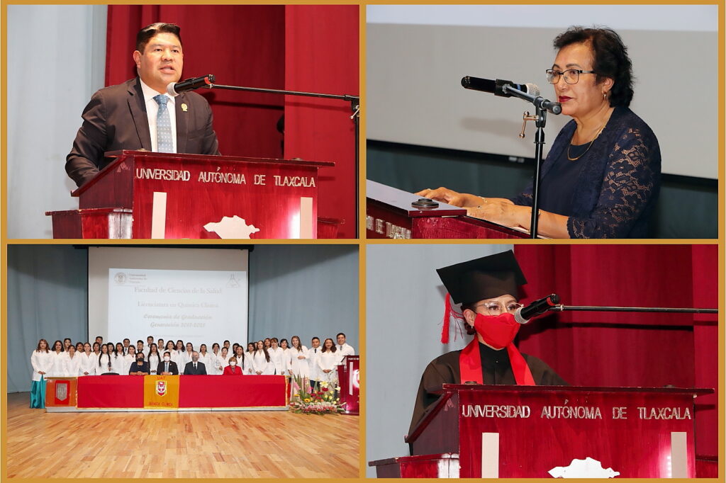 La trayectoria de la Universidad Autónoma de Tlaxcala (UATx), se mide por el trabajo colaborativo de docentes y personal administrativo, así como por la calidad y humanismo del trabajo cotidiano de sus egresados, mencionó el Dr. Enrique Vázquez Fernández, Secretario Académico, en representación del Rector, Dr. Luis González Placencia, en la ceremonia de graduación de la Licenciatura en Química Clínica, generación 2017-2021, que se imparte en la Facultad de Ciencias de la Salud.