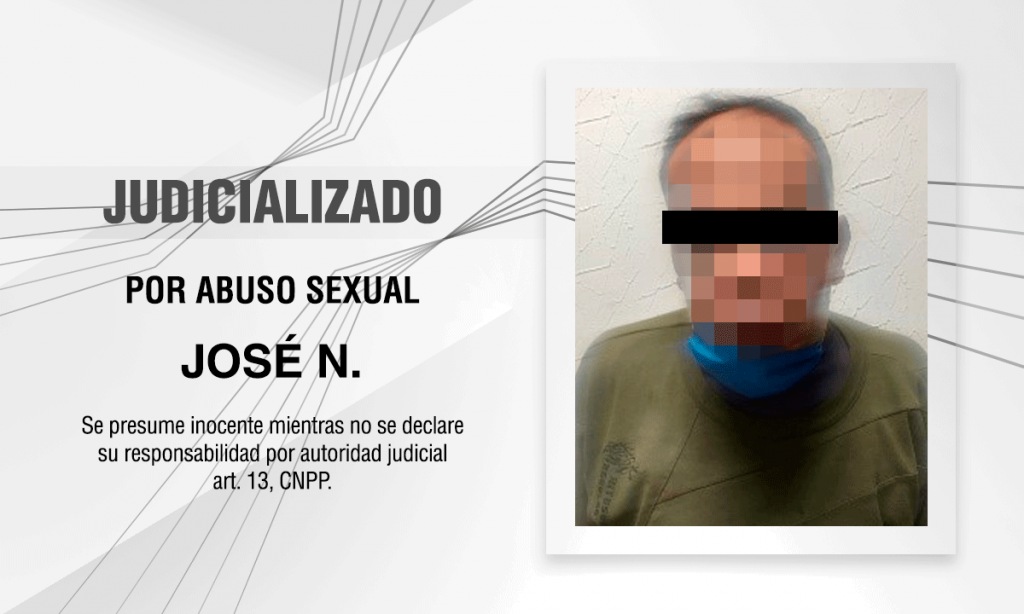De esta manera, la víctima señaló directamente a José N., de 51 años de edad, como su agresor, por lo anterior el imputado fue asegurado por elementos de la policía municipal y puesto a disposición del Agente del Ministerio Público correspondiente, quien ejercitó acción penal en su contra por el delito de abuso sexual.