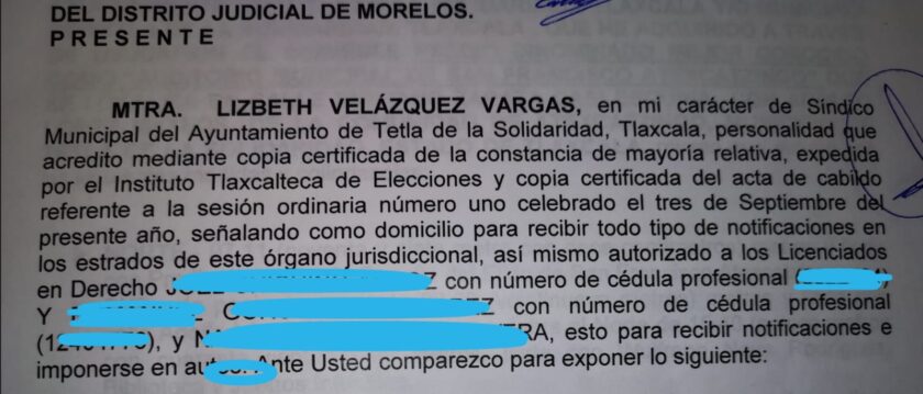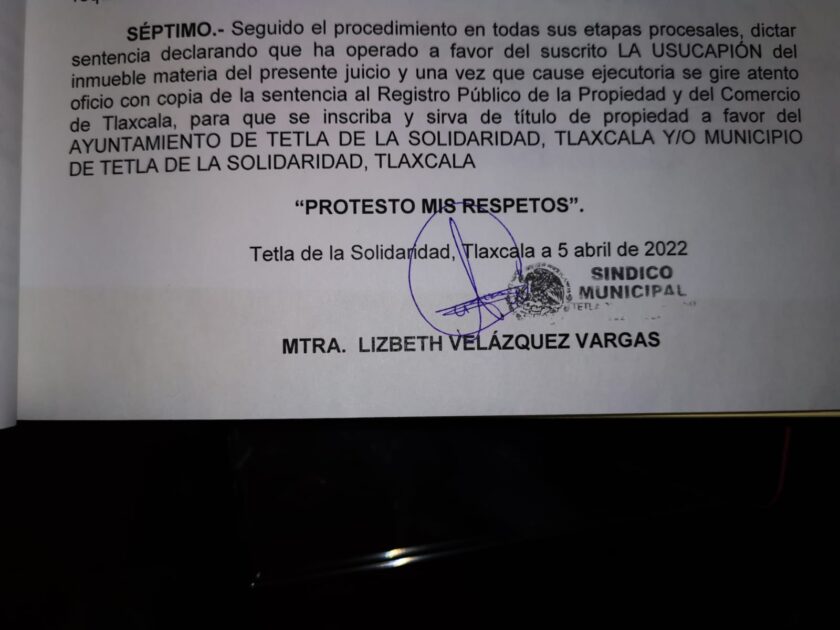 Al respecto, el Presidente Municipal Andrés Ramírez Galicia informó que la razón por la cual el procedimiento fue promovido por la Síndico Municipal Lizbeth Velázquez Vargas, es porque se trata de la representante legal del municipio y por lo tanto es la persona que por ley tiene que firmar los documentos para llevarlo a cabo.