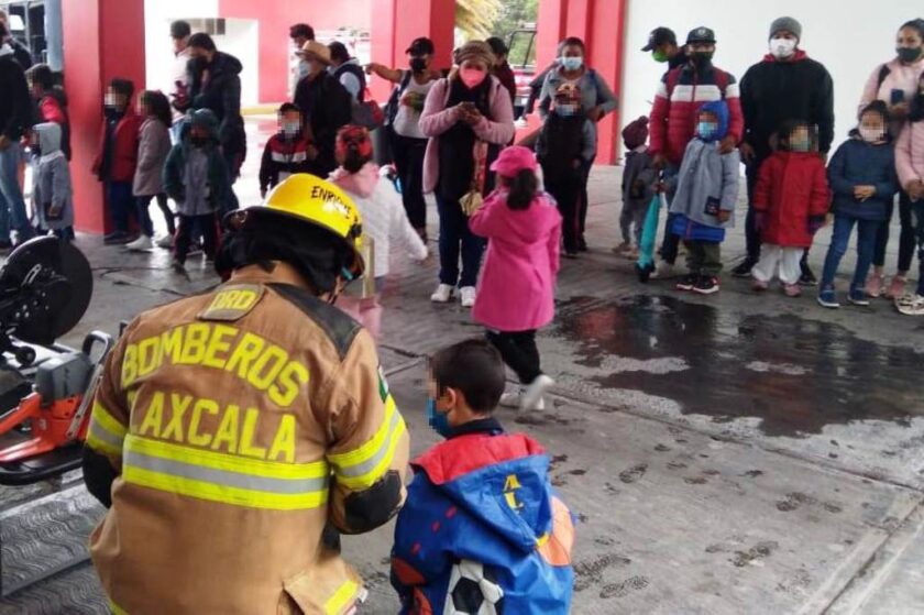 El Heroico Cuerpo de Bomberos perteneciente a la Secretaría de Seguridad Ciudadana (SSC), impartió pláticas en sus instalaciones, donde se desarrolló una visita guiada a 55 alumnos del preescolar “Miguel Osorio Ramírez”, de la comunidad de San Hipólito Chimalpa, Tlaxcala, ocho docentes y 55 padres de familia; asimismo se llevó a cabo una demostración de equipo y herramientas de bomberos y culminaron con un simulacro de incendio.