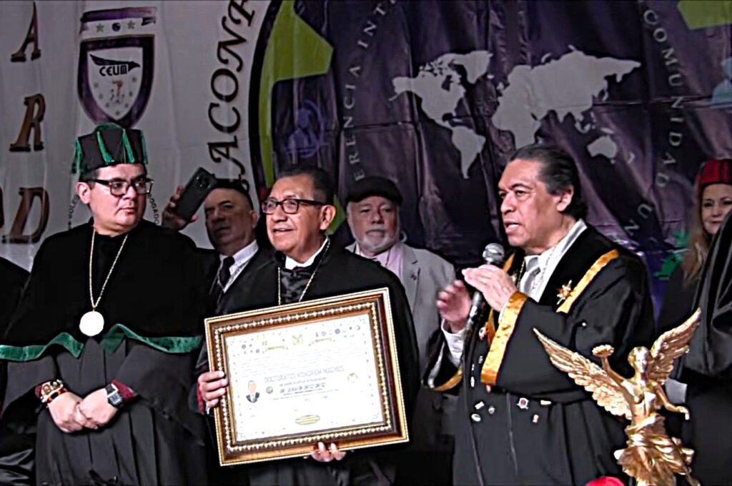 El Doctor Serafín Ortiz Ortiz, Rector de la Universidad Autónoma de Tlaxcala (UATx), recibió el 𝐆𝐚𝐥𝐚𝐫𝐝𝐨́𝐧 𝐏𝐚𝐭𝐫𝐢𝐨́𝐭𝐢𝐜𝐨 𝐑𝐞𝐯𝐨𝐥𝐮𝐜𝐢𝐨𝐧𝐚𝐫𝐢𝐨 (Doctoratus Honorem Magnus) y la 𝐏𝐫𝐞𝐬𝐞𝐚 𝐑𝐞𝐯𝐨𝐥𝐮𝐜𝐢𝐨́𝐧 𝐌𝐞𝐱𝐢𝐜𝐚𝐧𝐚, distinciones otorgadas por la 𝐂𝐨𝐧𝐟𝐞𝐫𝐞𝐧𝐜𝐢𝐚 𝐈𝐧𝐭𝐞𝐫𝐧𝐚𝐜𝐢𝐨𝐧𝐚𝐥 𝐝𝐞 𝐥𝐚 𝐂𝐨𝐦𝐮𝐧𝐢𝐝𝐚𝐝 𝐔𝐧𝐢𝐯𝐞𝐫𝐬𝐢𝐭𝐚𝐫𝐢𝐚 A.C., que preside el MD Roberto A. Villaseñor Aceves, con motivo del 115 aniversario de la Revolución Mexicana.