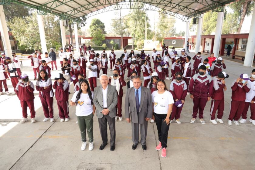 De esta manera, las y los alumnos de la secundaría Tlahuicole llevaron a cabo una activación física, denominada “Muévete Contra las Adicciones”; asimismo, la institución educativa recibió un reconocimiento por participar dentro de esta campaña.