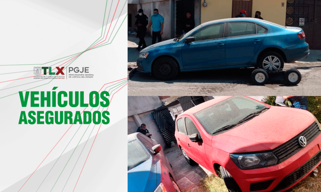 De esta manera, a través de una diligencia se recuperaron del interior del predio ubicado en la colonia La Joya, en el municipio de Tlaxcala, un vehículo marca Volkswagen, tipo Jetta, modelo 2018, color azul, así como un vehículo marca Volkswagen, tipo Golf, modelo 2020, ambos con reporte de robo en el estado de Puebla.