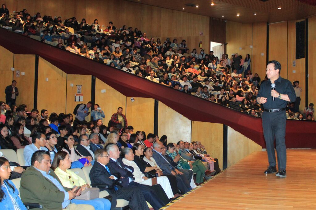 Los proyectos que desarrollan como estudiantes deben tener como meta la obtención de su título y cédula profesional, aseguró el Doctor Daniel Aceves Villagrán, medallista olímpico mexicano, al dirigirse a educandos de las tres licenciaturas de la Facultad de Ciencias de la Educación de la Universidad Autónoma de Tlaxcala (FCE-UATx), durante el desarrollo de su ponencia magistral “Historia olímpica con cultura del esfuerzo” en el marco de las actividades conmemorativas por el 60 aniversario de la Facultad.