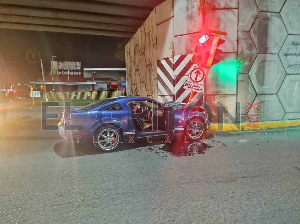 En estado de ebriedad choca su vehículo deportivo vs un puente vehicular, en Chiautempan