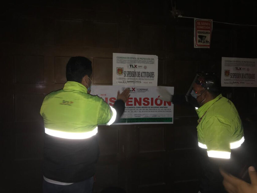 La Comisión Estatal para la Protección contra Riesgos Sanitarios del Estado de Tlaxcala (Coeprist) y la Coordinación Estatal de Protección Civil (CEPC), en conjunto con instancias federales y municipales, suspendieron reuniones sociales y establecimientos que no cumplían con las medidas preventivas para evitar contagios de Covid-19.