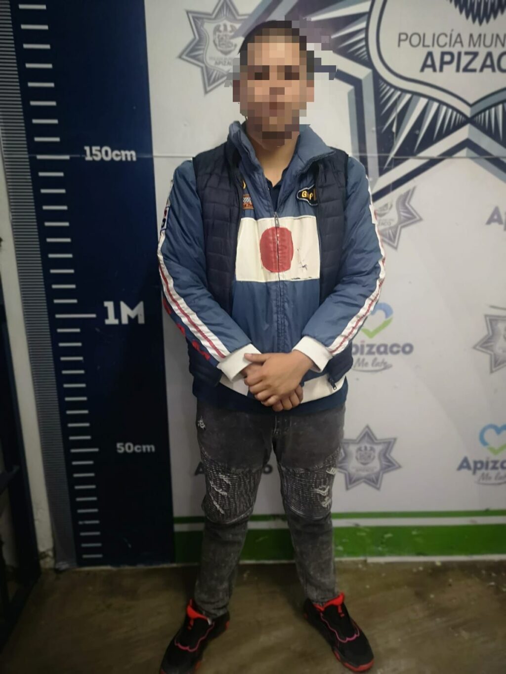 La oportuna respuesta coordinada por elementos de la Dirección de Seguridad Pública Municipal, Vialidad y Transporte de Apizaco, permitió realizar el aseguramiento de David N., señalado como presunto responsable de un robo con violencia en agravio de un transeúnte, en la comunidad de San Luis Apizaquito.