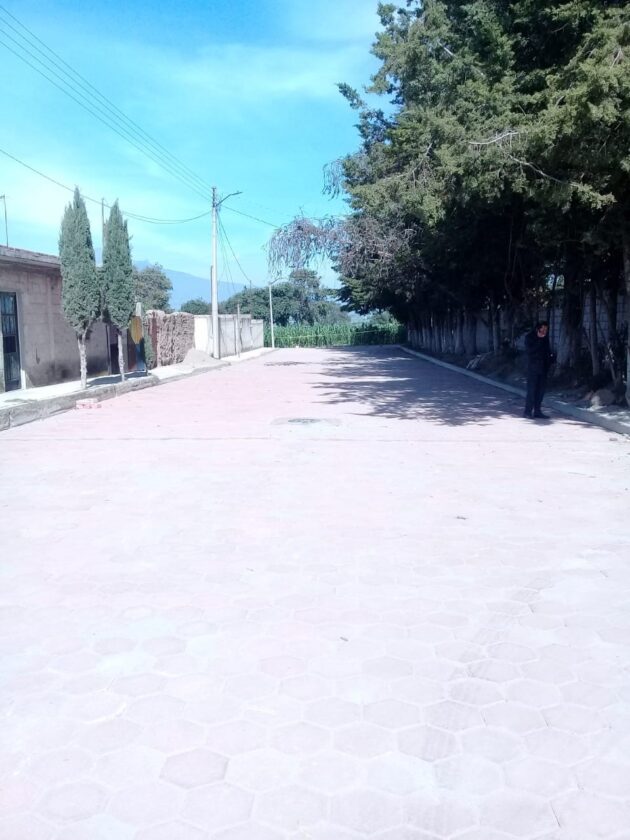 Huamantla, Tlax.- Con una extensión superior a los 2 mil metros cuadrados se llevaron a cabo trabajos de construcción de pavimento de adoquín y obras complementarias en la calle Emilio Sánchez Piedras de la comunidad Nuevo Centro de Población Morelos ubicada en el municipio de Huamantla.