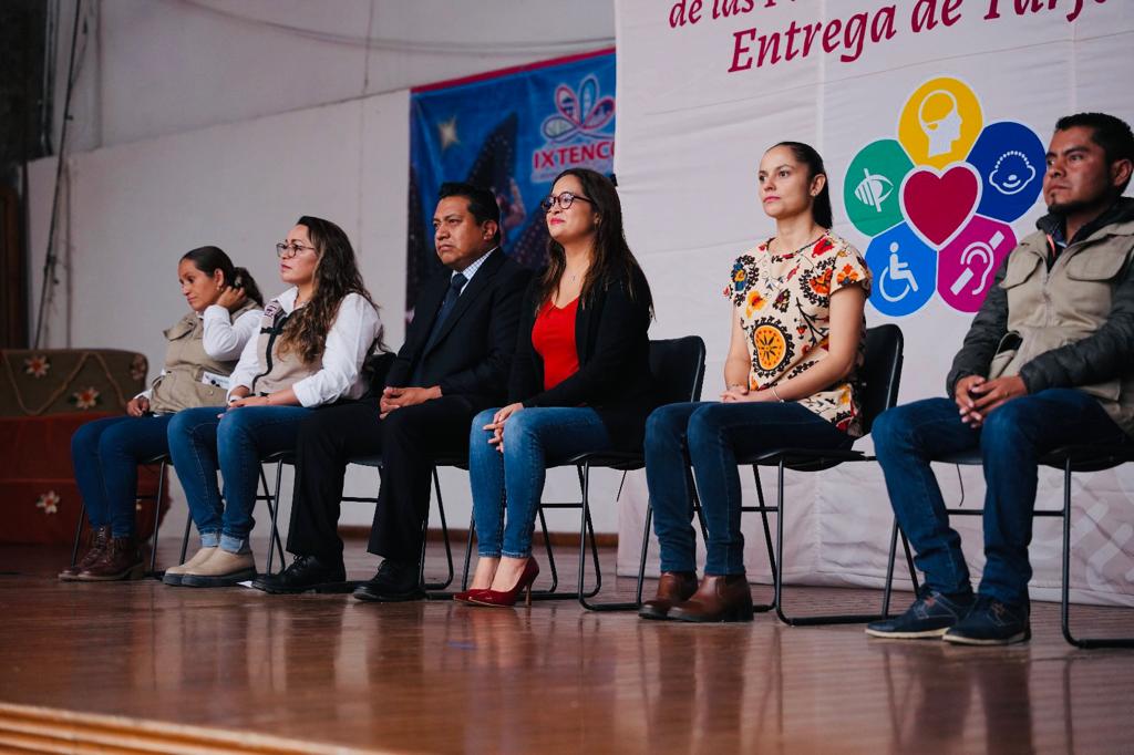 La presidenta honorífica del Comité de Bienestar y Desarrollo Social del estado, Fernanda Espinosa de los Monteros Cuéllar encabezó la entrega de 247 tarjetas de apoyos económicos a personas con discapacidad en el municipio de Ixtenco.