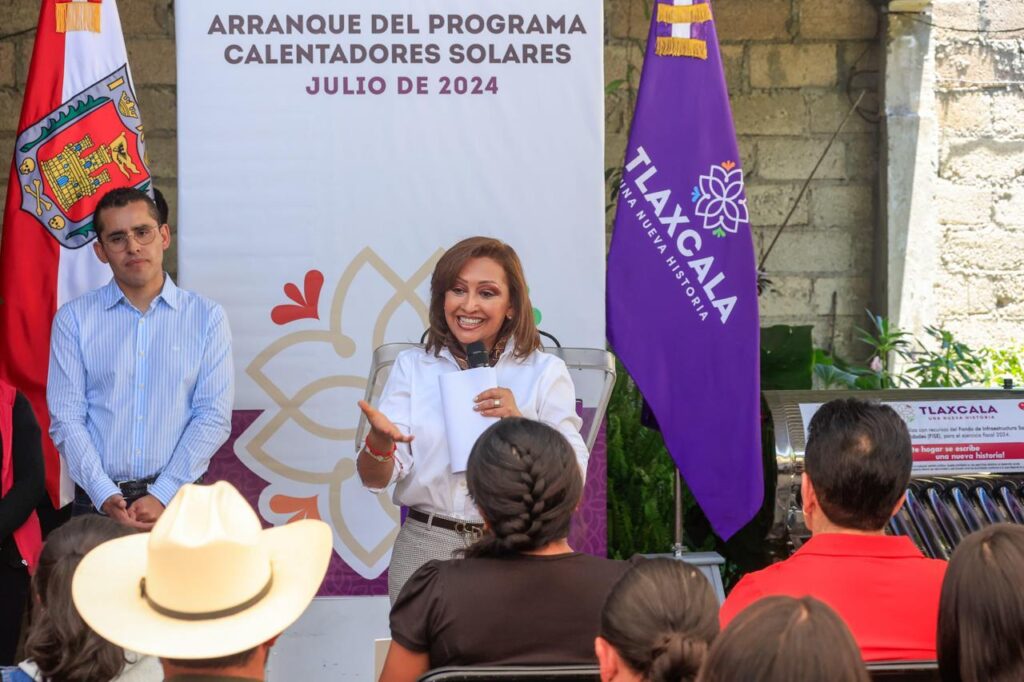 La titular del Ejecutivo local, Lorena Cuéllar Cisneros, y la presidenta honorífica del Comité Consultivo de Bienestar, Fernanda Espinosa de los Monteros Cuéllar, encabezaron el arranque del programa “Calentadores Solares 2024” de la Secretaría de Bienestar del Estado, mediante el cual se entregará este año un total de 3 mil 851 calentadores en beneficio de más de 15 mil tlaxcaltecas en condición vulnerable, quienes mejorarán su calidad de vida y generarán ahorros en su economía familiar.