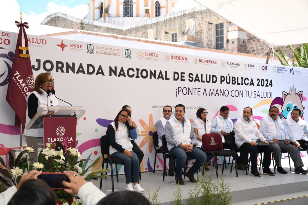 Con el lema ¡Ponte a Mano Con Tu Salud!, la gobernadora Lorena Cuéllar Cisneros encabezó en el municipio de Atltzayanca el inicio de la Primera Jornada Nacional de Salud Pública 2024, que se desarrollará hasta el 23 de agosto próximo, con la finalidad de promover la cultura del autocuidado y de acercar servicios de promoción de la salud y prevención de enfermedades a los diferentes grupos poblacionales de los 60 municipios del estado.