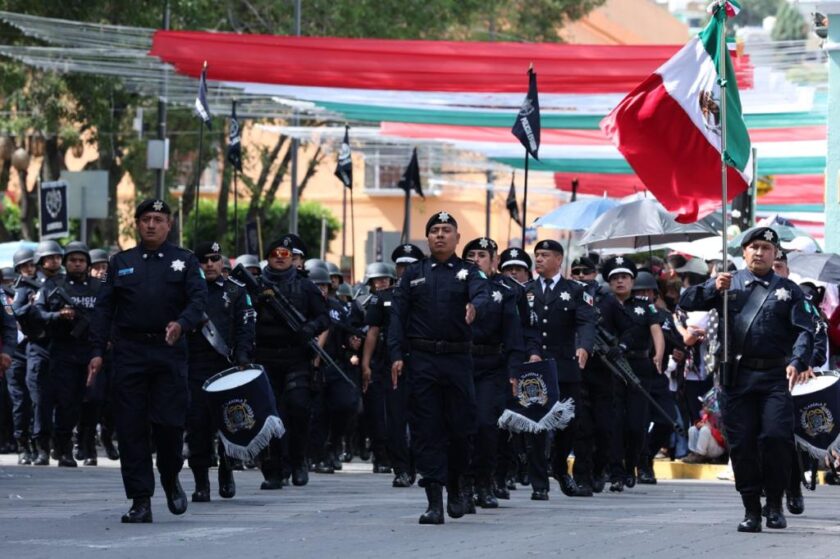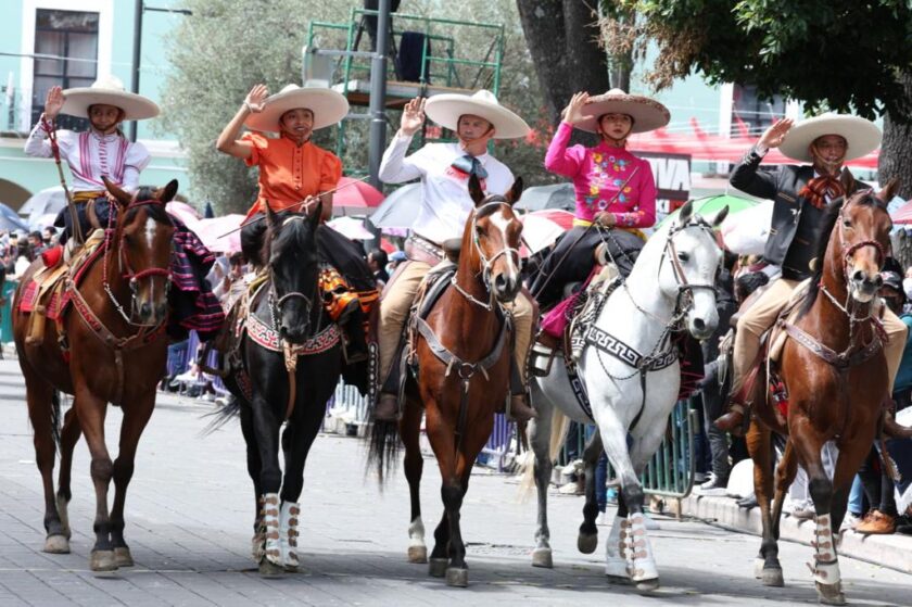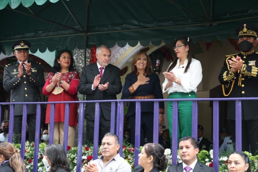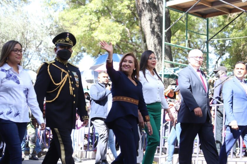 La titular del Ejecutivo local desfiló por las calles del primer cuadro de la ciudad acompañada de las presidentas de la Mesa Directiva del Congreso local, Leticia Martínez Cerón y del Tribunal Superior de Justicia del Estado (TSJE), Mary Cruz Cortés Ornelas; el comandante de la 23 Zona Militar, Santos Gerardo Soto; el comisionado de la Guardia Nacional (GN) en Tlaxcala, Vinicio Perea Alcaraz; el presidente municipal de Tlaxcala, Jorge Corichi Fragoso; funcionarios del gabinete legal y ampliado.