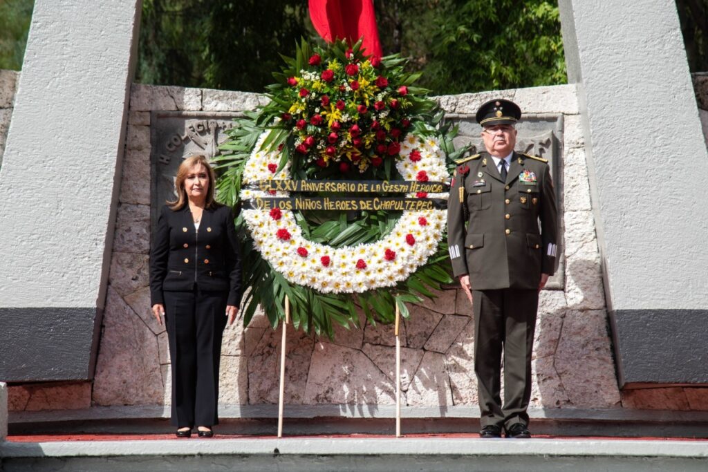 La gobernadora Lorena Cuéllar Cisneros encabezó la ceremonia conmemorativa por el 175 aniversario de la Gesta Heroica de los Niños Héroes de Chapultepec, efectuada en el Parque de la Juventud de la ciudad capital este martes.