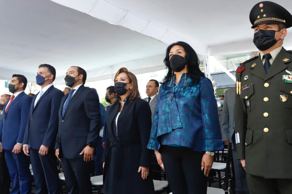Acompañada de representantes de los tres poderes del estado y familiares de don Emilio Sánchez Piedras, la mandataria estatal colocó una ofrenda floral y montó guardia de honor en el monumento al ex gobernador de Tlaxcala.
