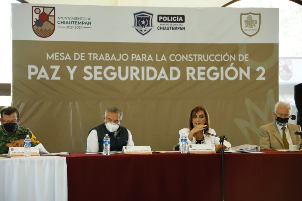 La gobernadora Lorena Cuéllar Cisneros encabezó, la “Mesa de trabajo para la construcción de paz y seguridad región II” en el municipio de Chiautempan, a fin de fortalecer e impulsar mecanismos certeros que permitan mejorar la seguridad en el estado.