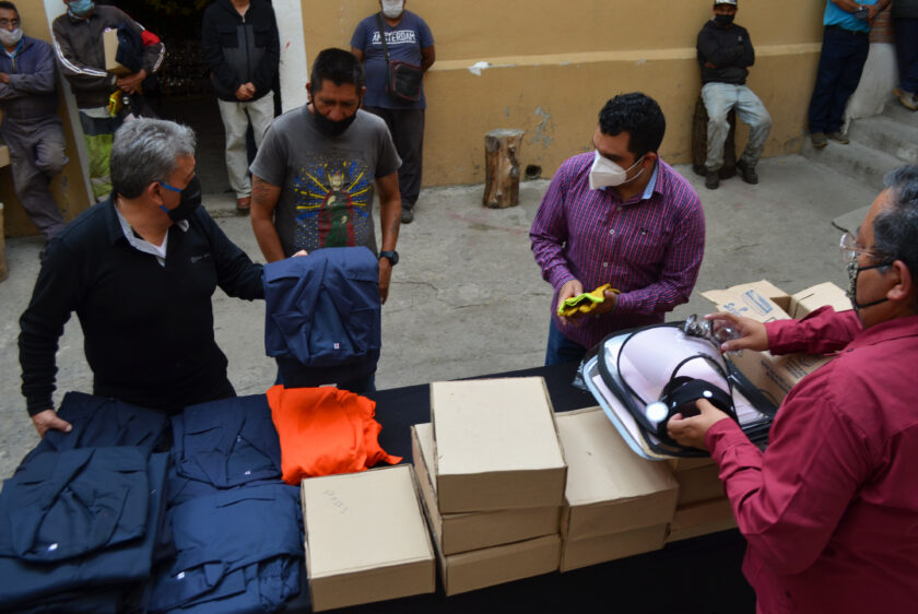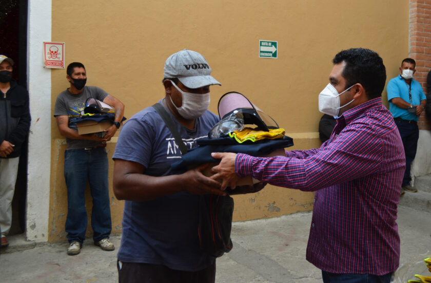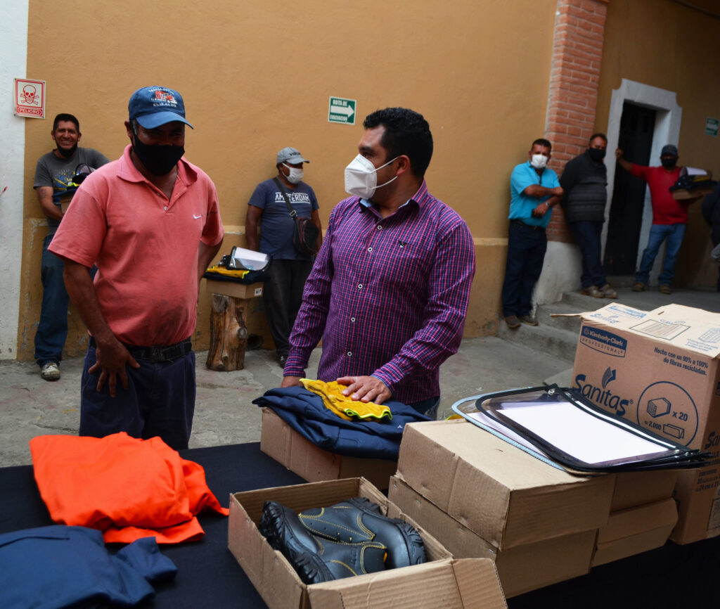 En este sentido, el Presidente Municipal, reconoce la labor esencial de quienes han trabajado sin descanso desde el inicio de la pandemia, y, con la finalidad también de mejorar sus condiciones de trabajo les hizo entrega de los siguientes insumos: botas con casquillo, overoles, guantes de carnaza, googles (anteojos protectores) y gorra con careta.