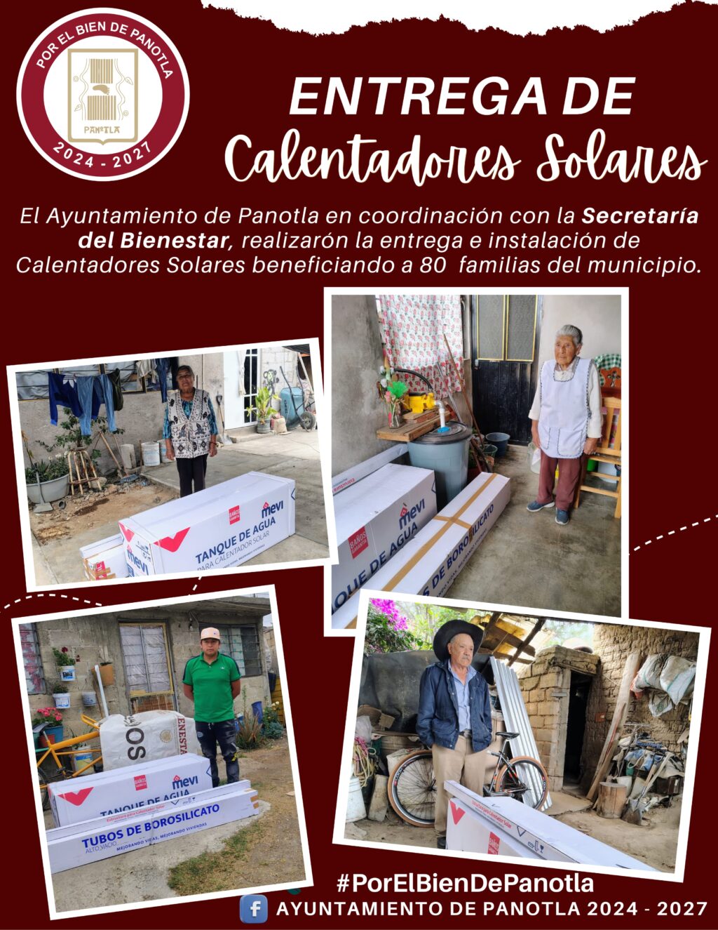 En un esfuerzo coordinado entre la Secretaría del Bienestar del Estado de Tlaxcala y el H. Ayuntamiento de Panotla, que encabeza el presidente municipal Idelfonso Carro Roldán, se llevó a cabo en diferentes días la entrega e instalación de calentadores solares en distintas comunidades del municipio.