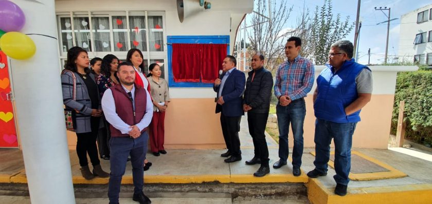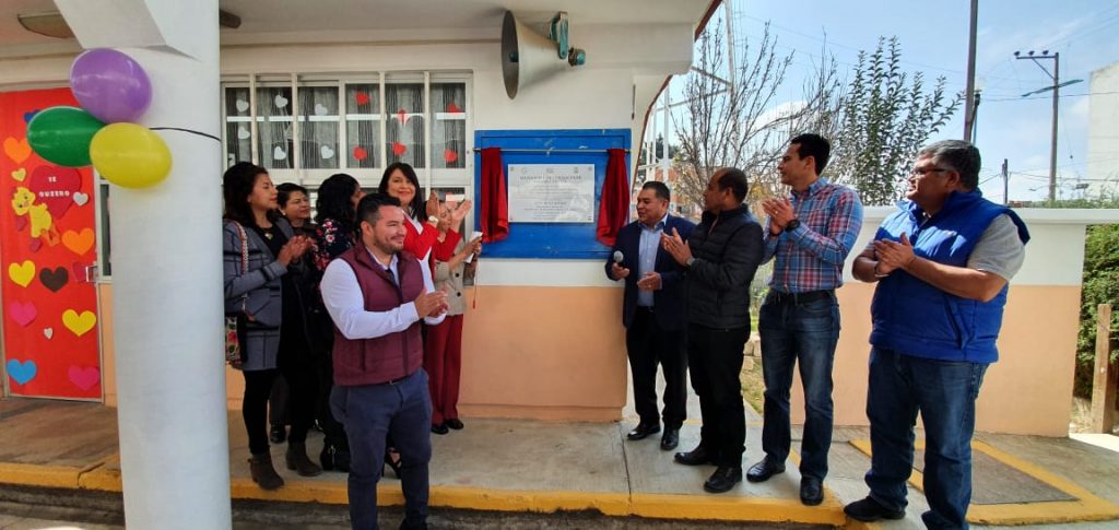 El presidente municipal de San Pablo Apetatitlan, Eloy Reyes Juárez, acompañado de Autoridades Municipales y Educativas dieron entrega la mañana del paso viernes 14 de Febrero, la construcción de la techumbre en el preescolar “Matlalcueyetl” ubicado en la cabrera municipal.