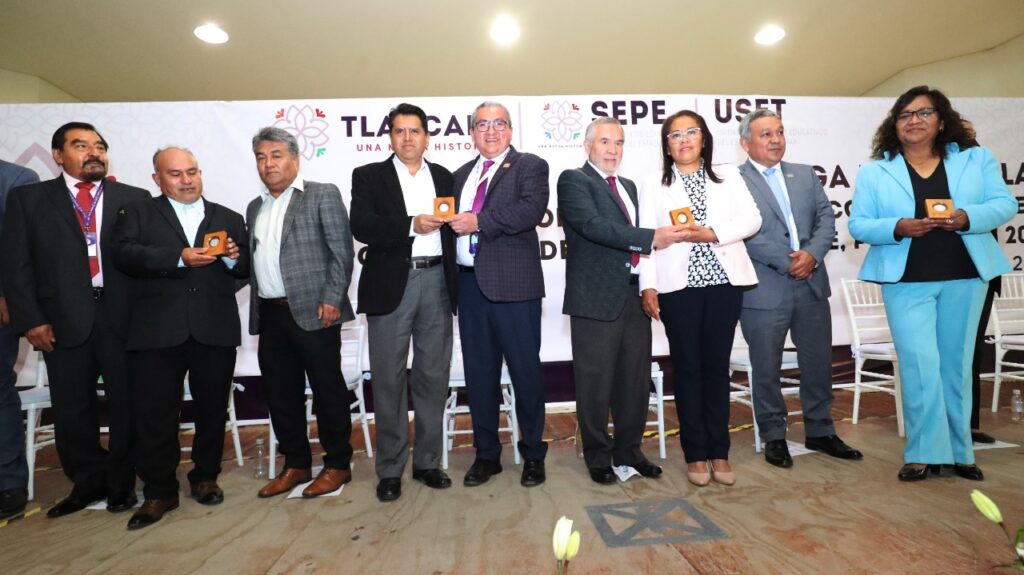 En representación de la gobernadora, Lorena Cuéllar Cisneros, los secretarios de Gobierno, Sergio González Hernández y de Educación Pública del Estado y director general de la Unidad de Servicios Educativos del Estado de Tlaxcala (USET), Homero Meneses Hernández, entregaron 231 estímulos económicos y la medalla “Leonarda Gómez Blanco de Hernández” por 30 años de servicio docente a 140 maestras y 91 maestros de diversas agrupaciones sindicales.
