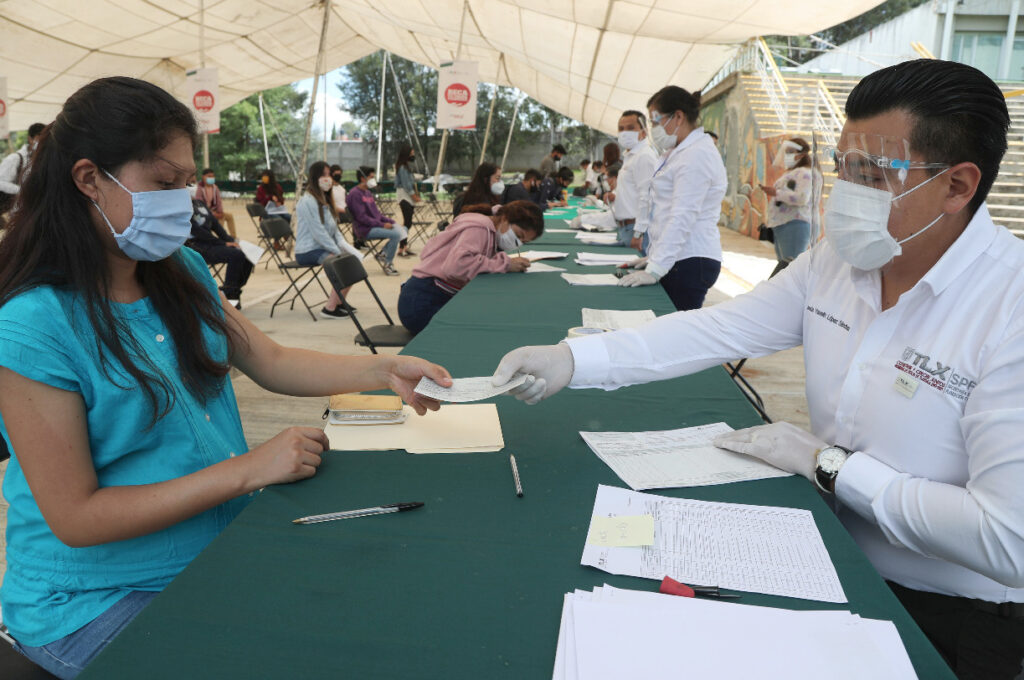 Atendiendo las recomendaciones sanitarias, personal de la SEPE-USET, citó a los jóvenes en diferentes horarios con el propósito de evitar concentraciones masivas y realizar de manera ágil, el trámite del pago de la beca.