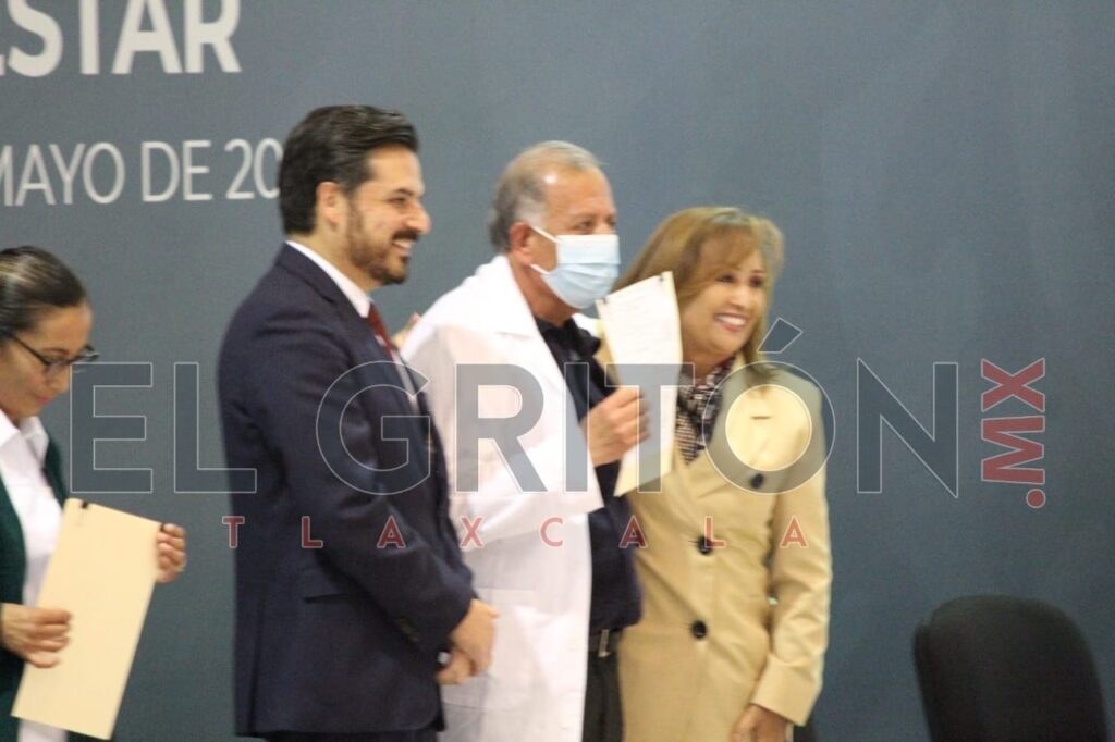 Por su parte, la Gobernadora de Tlaxcala, Lorena Cuéllar Cisneros, entregó de manera simbólica 10 plazas laborales a médicos y enfermeras con diferentes años de antigüedad.