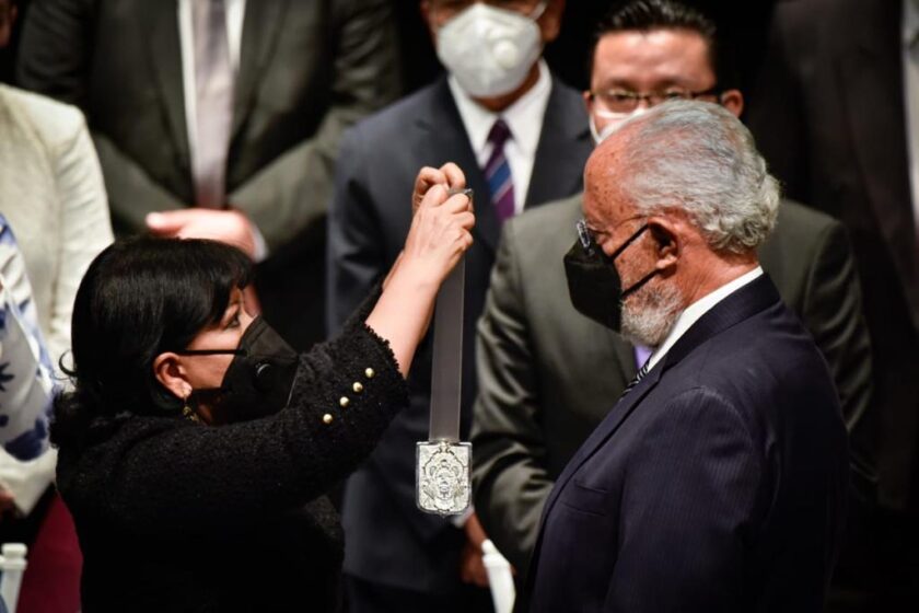 En una emotiva ceremonia realizada en el Teatro Xicohténcatl, con reducido aforo y atención a las medidas sanitarias, la presidenta municipal de Tlaxcala, Anabell Ávalos Zempoalteca en presencia del secretario de Gobierno, Aarón Pérez Carro en representación del gobernador Marco Antoni Mena Rodríguez, así como del síndico, regidores, presidentes de comunidad y delegados, entregó el distinguido galardón al ex diputado federal.