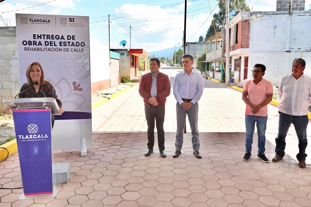 Entregó gobernadora Lorena Cuéllar pavimentación de calles en Santa Cruz Tlaxcala
