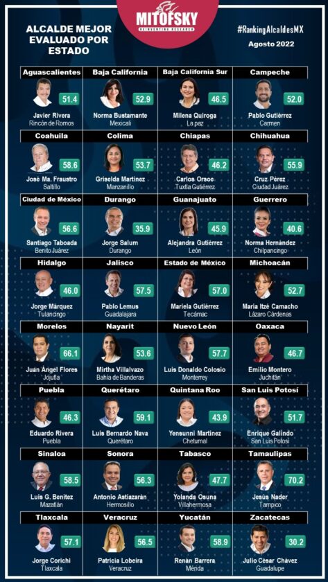 De igual forma, el estudio de opinión dado a conocer indica que Corichi Fragoso se encuentra entre los 10 alcaldes mejor evaluados en todos los municipios capitalinos de México al sumar 57.1 por ciento de aprobación.