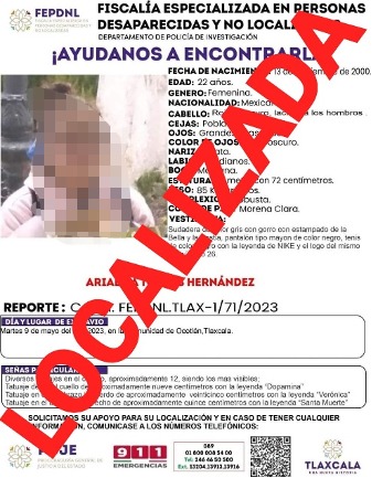 Agentes de la Policía de Investigación adscritos a la Fiscalía Especializada en Personas Desaparecidas y No Localizadas (Fepdnl) de la Procuraduría General de Justicia del Estado (PGJE), presentaron a una persona del sexo femenino quien fue reportada como desaparecida por sus familiares.