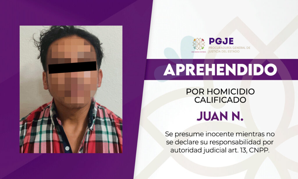 Las labores de inteligencia del Grupo de la Policía de Investigación Especializado en Homicidios Dolosos de la Procuraduría General de Justicia del Estado (PGJE), permitieron la captura de Juan Carlos N., quien contaba con una orden de aprehensión por el delito de homicidio calificado que ocurrió en agosto pasado, en el municipio de Atltzayanca.