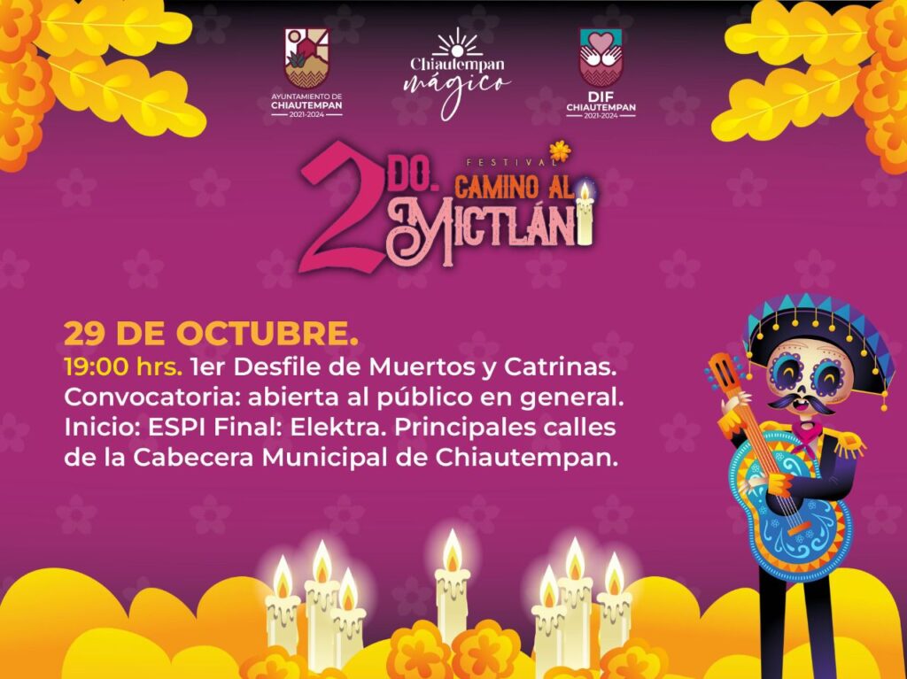 Con coloridos contingentes alusivos a la celebración del “Día de Muertos y “Todos Santos”, el Ayuntamiento de Chiautempan llevará a cabo este sábado 29 de octubre a las 19:00 horas, el “1er Desfile de Muertos y Catrinas” por las principales calles de la ciudad.