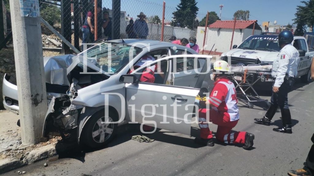 El joven conductor de un vehículo particular y su madre, resultaron lesionados de consideración, luego de que éste evitara colisionar con una camioneta que salió de una gasolinera imprudentemente, y se impactó contra un poste de luz, en el bulevar Ocotlán, muy cerca de un Colegio de Bachilleres.