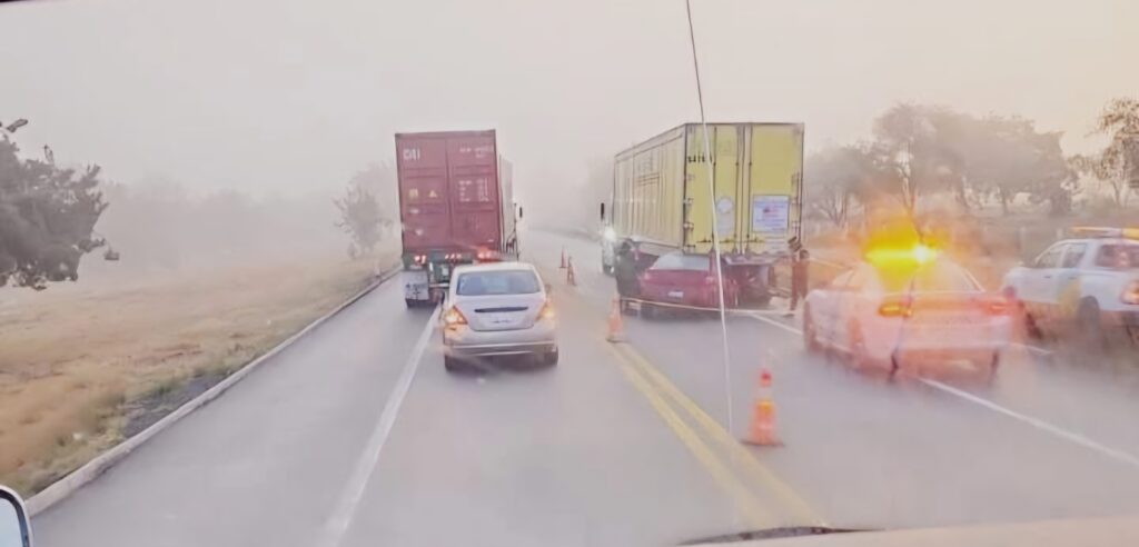 El accidente ocurrió en la colonia Santa Beatriz La Nueva, donde automovilistas alertaron al número de emergencias 911 sobre la colisión entre un vehículo compacto tipo Neon de color rojo y un tráiler.
