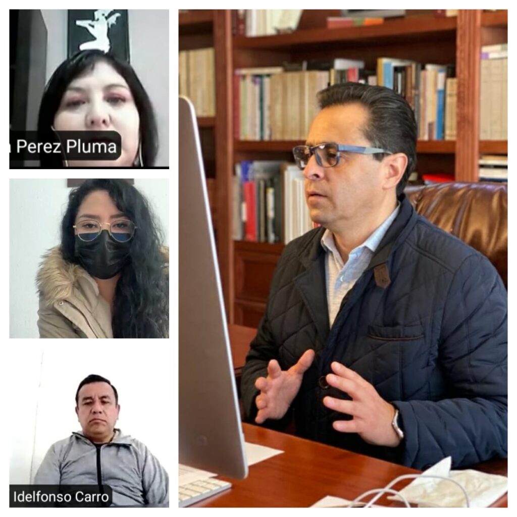 En la reunión virtual, que realizó con directores de área de la Sepol, Camacho Higareda afirmó que el Gobierno de Marco Mena tiene un gran compromiso con la salud de todos los tlaxcaltecas, por ello los invitó a continuar con las medidas de protección e higiene y practicarlas en todo momento.