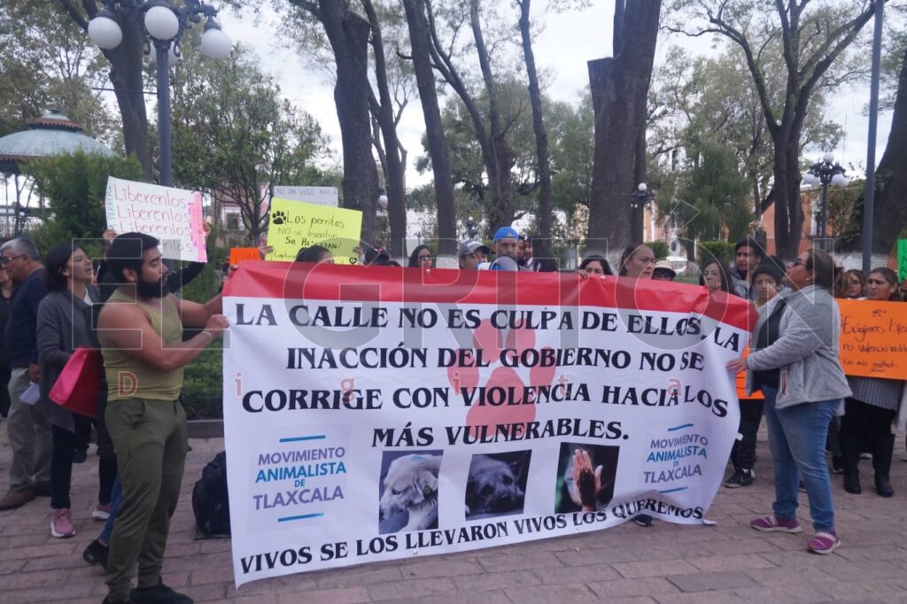 Integrantes del Movimiento Animalista de Tlaxcala y ciudadanos simpatizantes con los derechos de los animales se manifestaron este miércoles frente al Ayuntamiento de la capital para exigir la devolución inmediata de los perros callejeros que fueron capturados durante un operativo realizado entre la noche del lunes y la madrugada del martes.