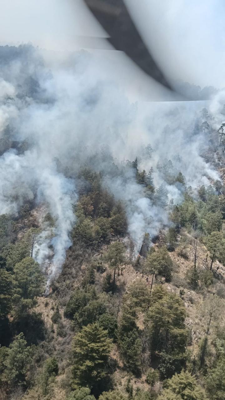 “Desde la mañana ya hizo un primer vuelo de reconocimiento con el apoyo también de las labores de coordinación de nuestro helicóptero Malinche, el cual ya hizo una primera descarga, de la que viene regresando”.