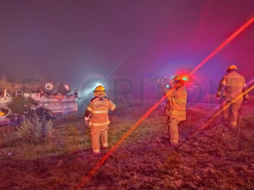 El parte informativo informó que, tras la volcadura el chófer escapó de la unidad siniestrada, misma que, según el reporte, se estaba incendiado.