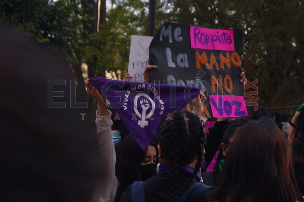 Con pancartas y flores, las mujeres guardaron un minuto de silencio por cada mujer agredida y asesinada en Tlaxcala, a la par que exigieron a las dependencias encargadas de procurar e impartir justicia revisen cada caso y se sancione a los responsables conforme a la ley.