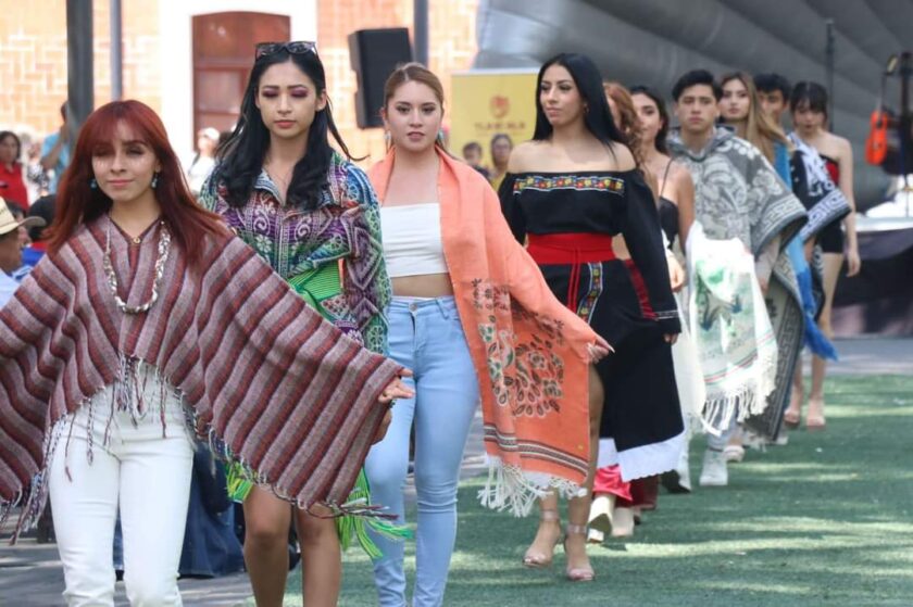 La moda artesanal estuvo presente en tres momentos a lo largo del día, donde modelos de la academia GM de Tlaxcala que dirige Celeste González, mostró prendas de los artesanos tanto del pabellón que se ubica en la Plaza de la Constitución los fines de semana como en el mercado de artesanos de Tlaxcala que está abierto al público de miércoles a lunes de 10:00 a 19:00 horas.