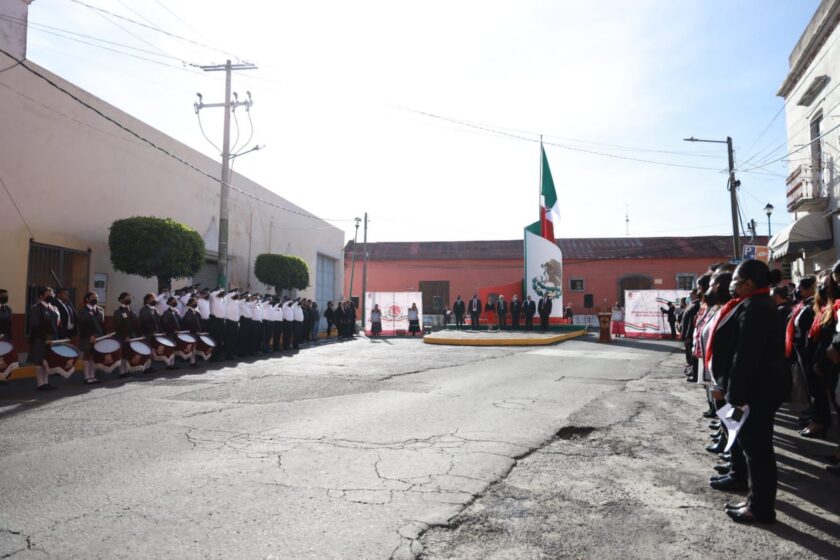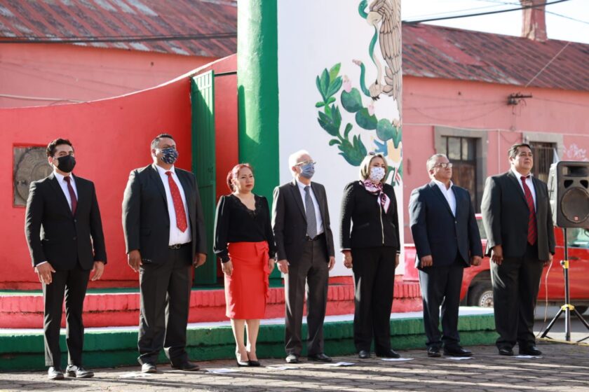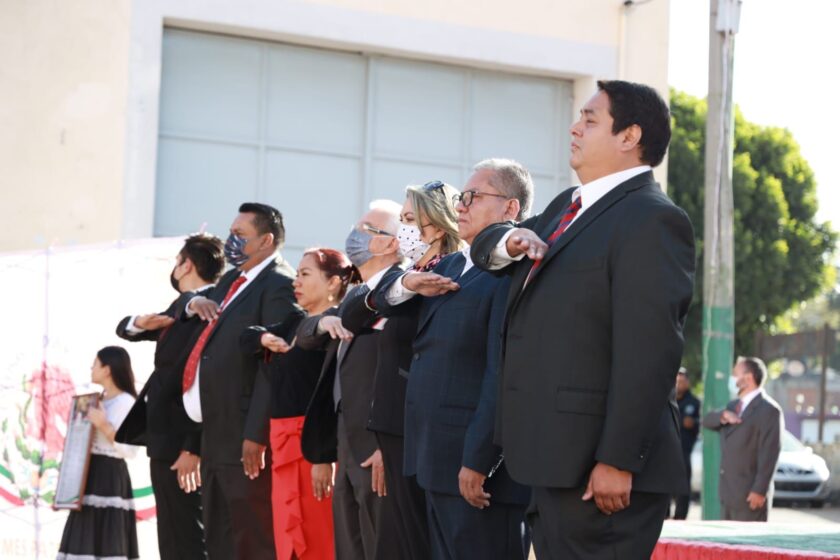 Previo a la fijación de los bandos, el alcalde en compañía de la síndico municipal, María Estela Hernández Grande; del Secretario del Ayuntamiento, Carlos Cerdio Osorio; de la Presidenta honorífica del DIF Municipal, Mónica Jiménez Ramírez y de la Junta Patriótica, llevaron a cabo el Homenaje cívico del inicio del mes patrio y el izamiento de la bandera nacional.