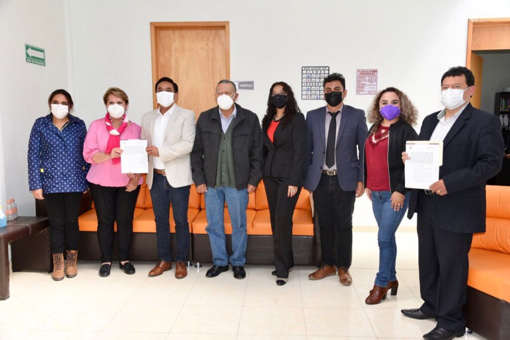 En la firma del convenio participaron la síndico municipal, Rosalba Salas Jaramillo, y el contralor interno del Ayuntamiento de Tlaxcala, Olaf Hernández Cuahutle.