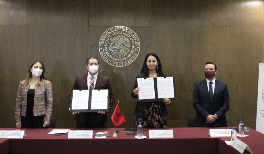Con el objetivo de intercambiar buenas prácticas jurídicas para el fortalecimiento académico y profesional del factor humano, el Magistrado Presidente del Tribunal Superior de Justicia y del Consejo de la Judicatura del Estado (TSJ-CJE), Héctor Maldonado Bonilla, y la Segunda Vicepresidenta de la Barra Mexicana Colegio de Abogados, firmaron un convenio de colaboración interinstitucional, teniendo como testigo al Presidente del Capítulo Tlaxcala, Juan Carlos Vázquez Vázquez.
