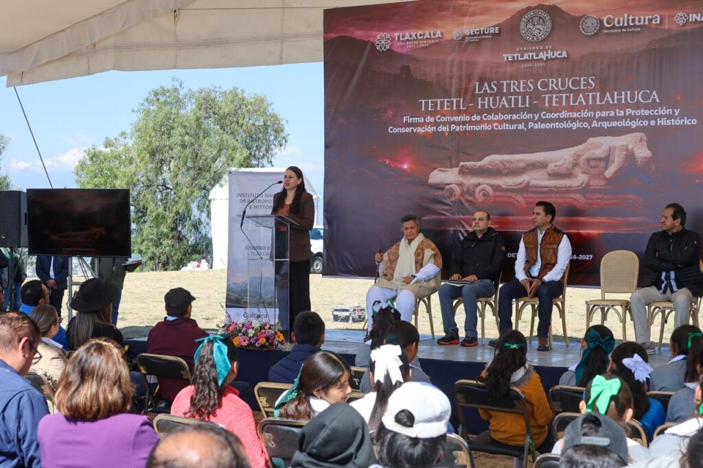 El Gobierno del Estado, a través de la Secretaría de Cultura (SC), y el Instituto Nacional de Antropología e Historia (INAH), firmaron un convenio de colaboración y coordinación para la protección y conservación del patrimonio cultural, arqueológico e histórico de las Tres Cruces Tetetl-Huautli-Tetlatlahuca, en el municipio de Tetlatlahuca.