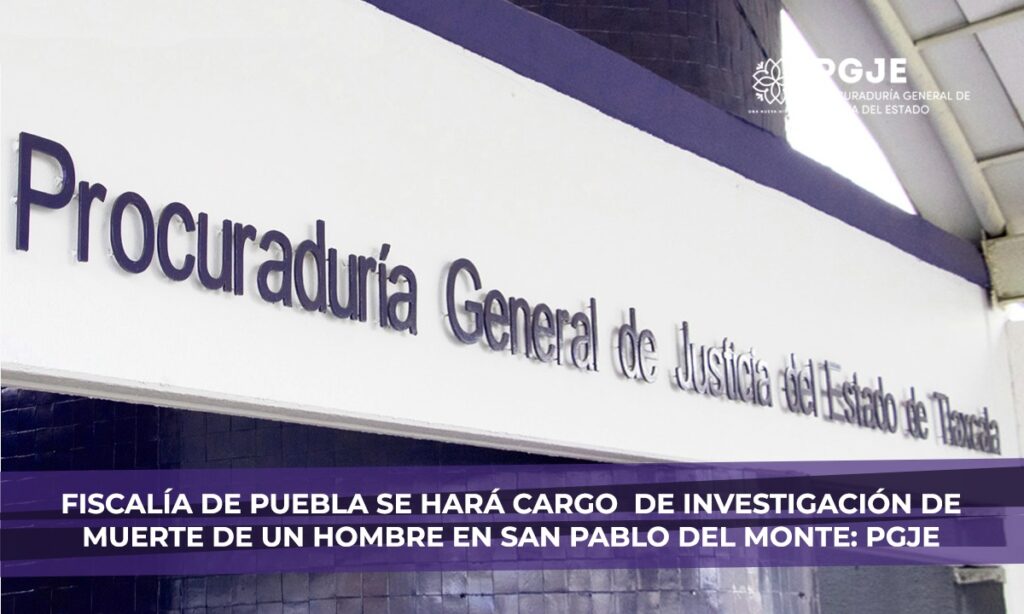 La Procuraduría General de Justicia del Estado de Tlaxcala (PGJE) informa que, será la Fiscalía General del estado de Puebla quien lleve a cabo la investigación de la muerte de un adulto en San Pablo del Monte, que colinda con territorio poblano.