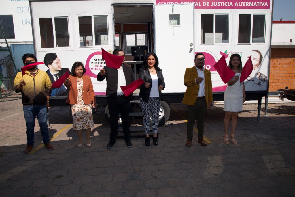 En compañía del Magistrado Enrique Acoltzi Conde, la Magistrada Presidenta, Mary Cruz Cortés Ornelas, detalló que la unidad itinerante opera con una Mediadora Pública certificada, quien es el puente de comunicación entre dos personas que probablemente tengan un conflicto en las materias civil, familiar, vecinal y escolar, a fin de que puedan alcanzar un acuerdo.