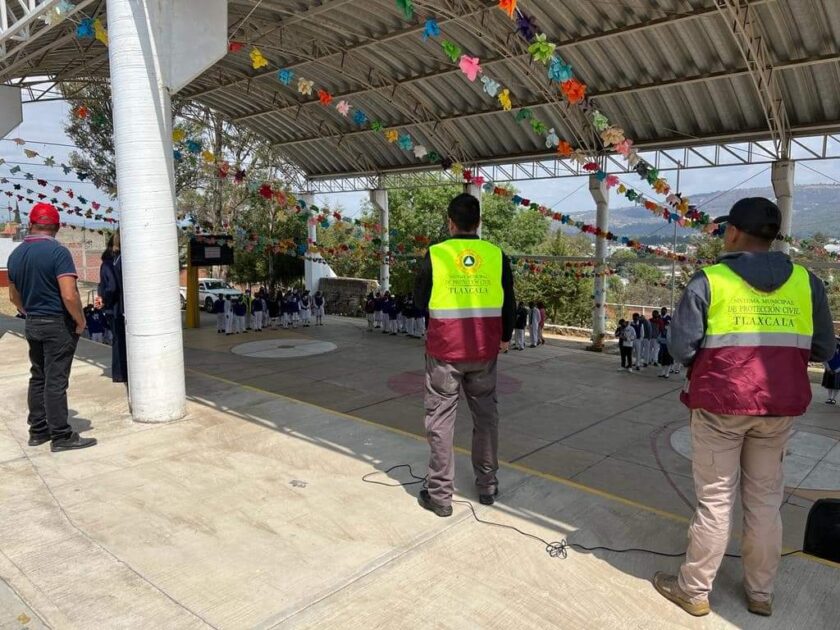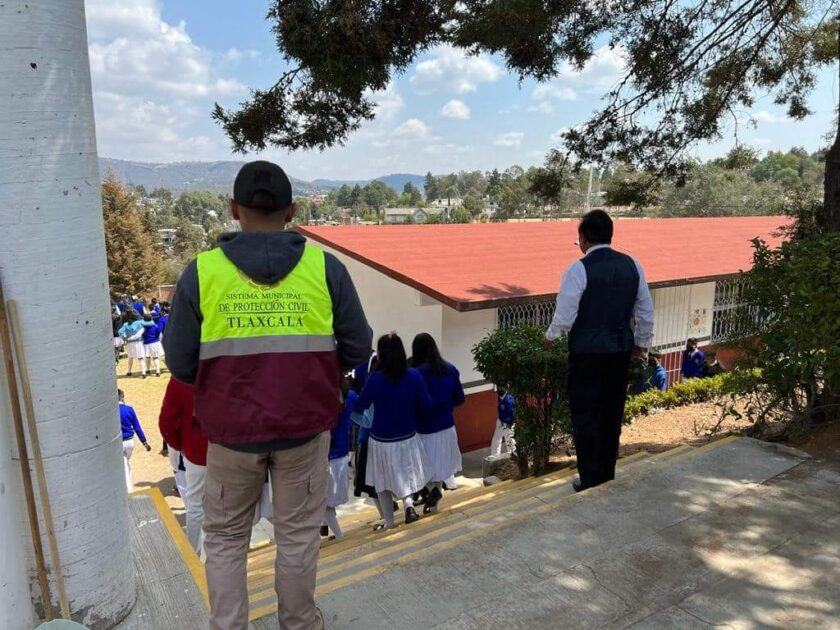 En este marco, protección civil municipal coordinó un simulacro de sismo en la Telesecundaria “21 de Marzo”, en la comunidad de San Lucas Cuauhtelulpan.