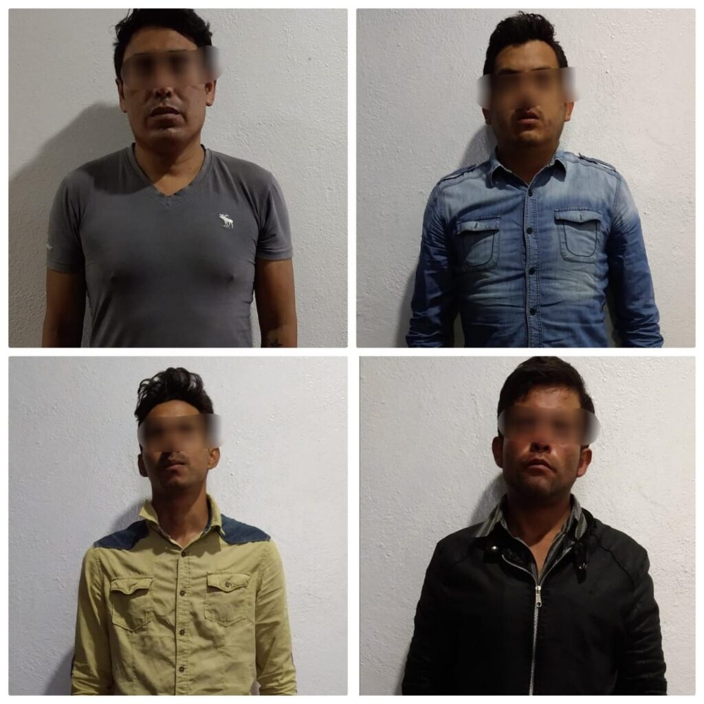 Los imputados que se identificaron como Juan Alejandro N., de 37 años de edad, vecino de Huamantla; Marbián N., de 25, originario de Yauhquemehcan; Mario Alberto N., de 34 y Jorge N., de 30, ambos de Apizaco, fueron puestos a disposición de la Unidad de Investigación del Delito.