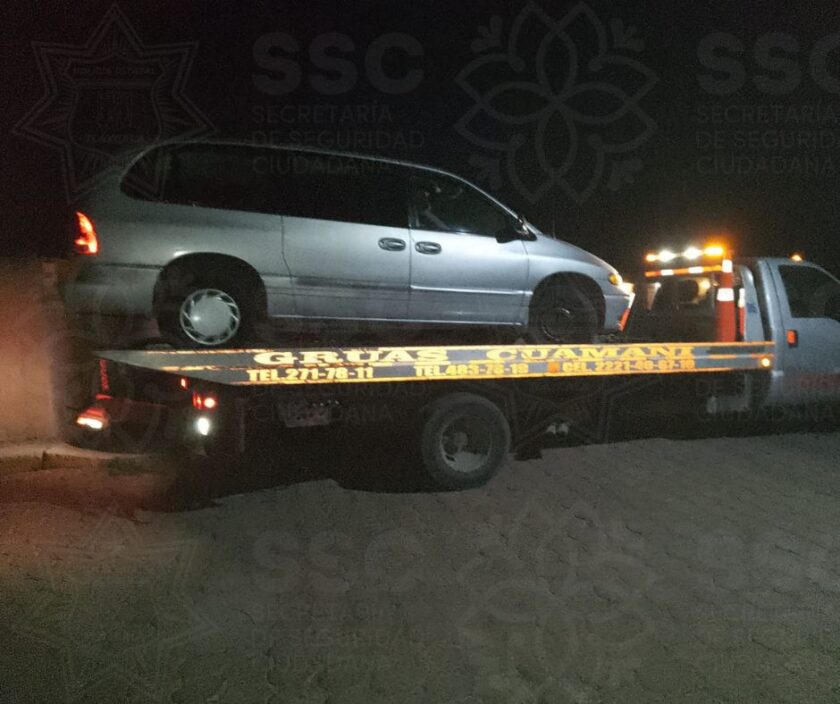 Mientras que elementos de la Dirección de Seguridad Pública, delegación San Pablo del Monte, aseguraron un automóvil marca Chrysler, Town and Country, color gris, con placas particulares del estado de Guerrero, a la altura de la comunidad de Olextla, perteneciente al municipio de Acuamanala; así como una unidad Toyota, tipo prius, color blanco, sobre la cuarta sección de Xaltipac, municipio de Papalotla.