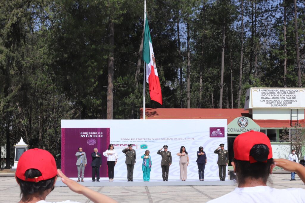 En tanto, el comandante del Segundo Regimiento Mecanizado y del Centro de Adiestramiento, Óscar Alfonso Zenteno Villagómez refirió que este acto representa el compromiso de estar listos para servir a su nación respondiendo a su llamado en cualquier momento y lugar, “estamos decididos a que los jóvenes soldados y las mujeres voluntarias contribuyan al fortalecimiento de México (…) que actúen siempre con apego a los valores cívicos, sobre todo que asuman el papel protagónico que les corresponde en los cambios de la sociedad, para edificar un país más justo, incluyente y próspero”.